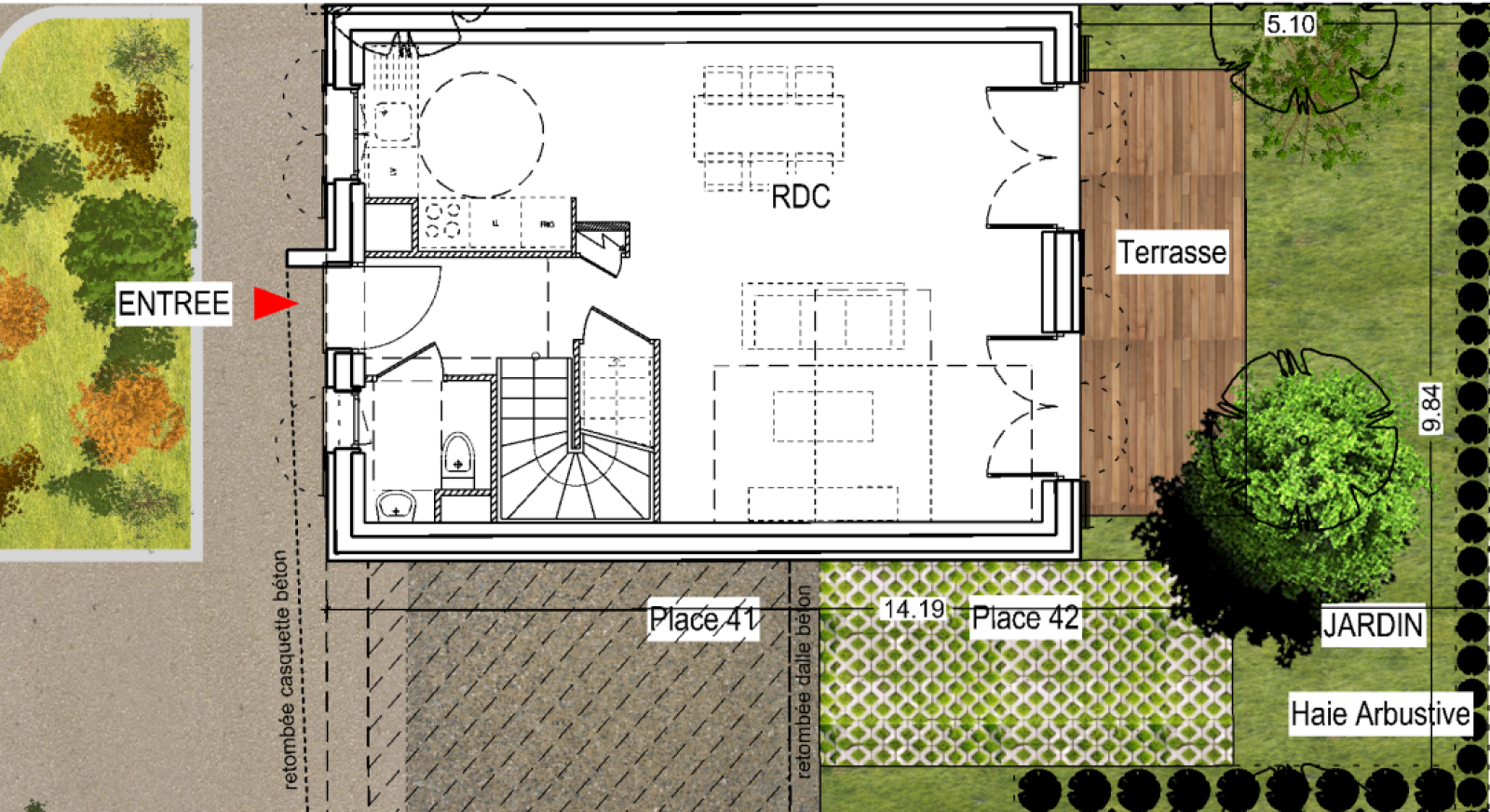 Jardin 54.57m22 Parkings