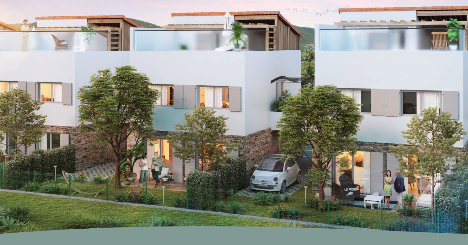 Nichée dans un quartier résidentiel à proximité immédiate du centre-ville, du port et des plages, votre future villa dévoile une élégante façade en triptyque. Chaque maison combine harmonieusement pierres reconstituées, enduit minéral et lattis bois, créant une architecture moderne et soignée.