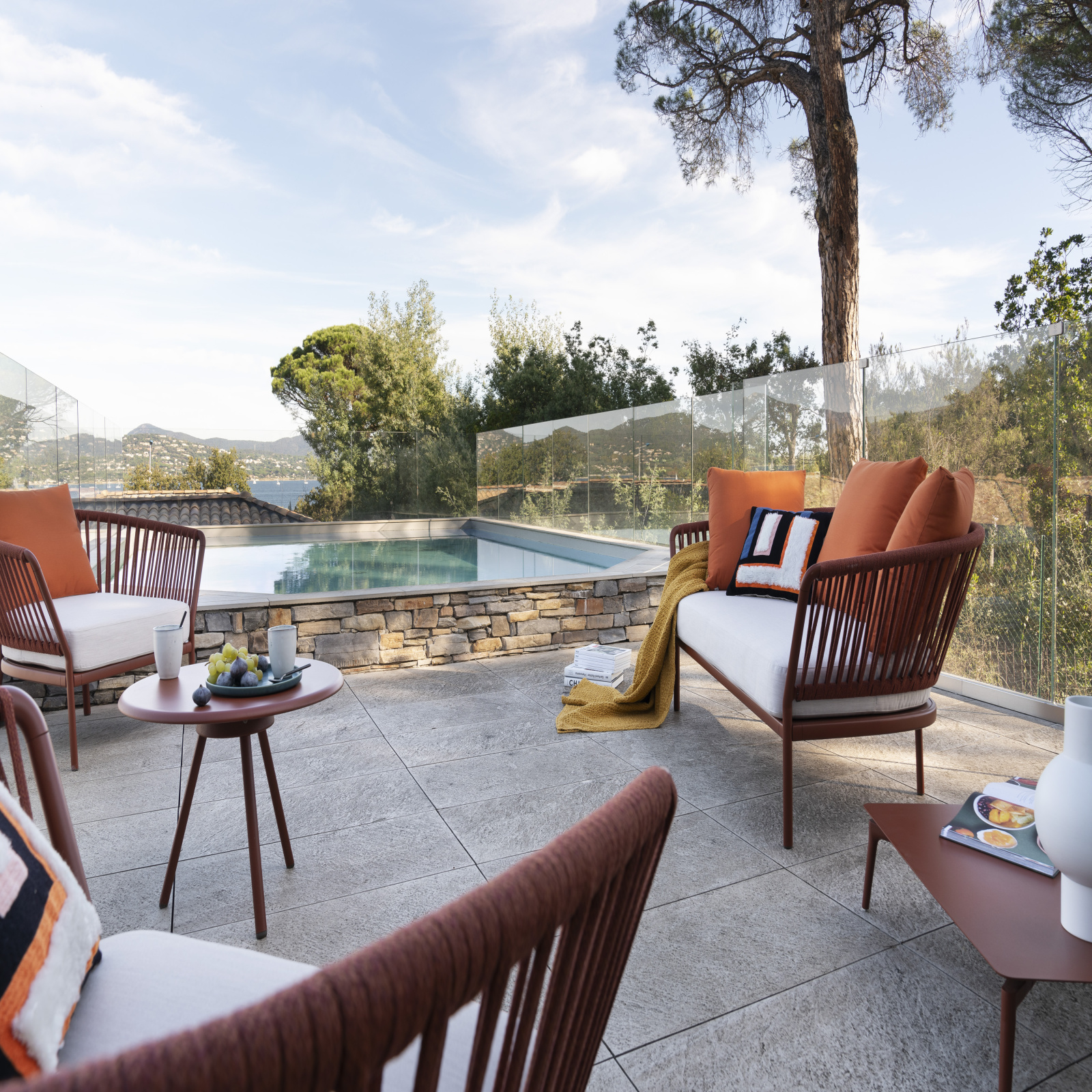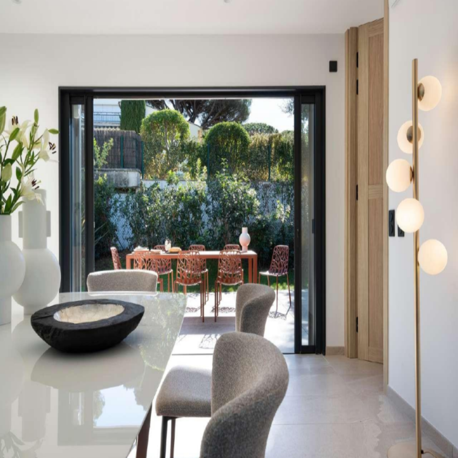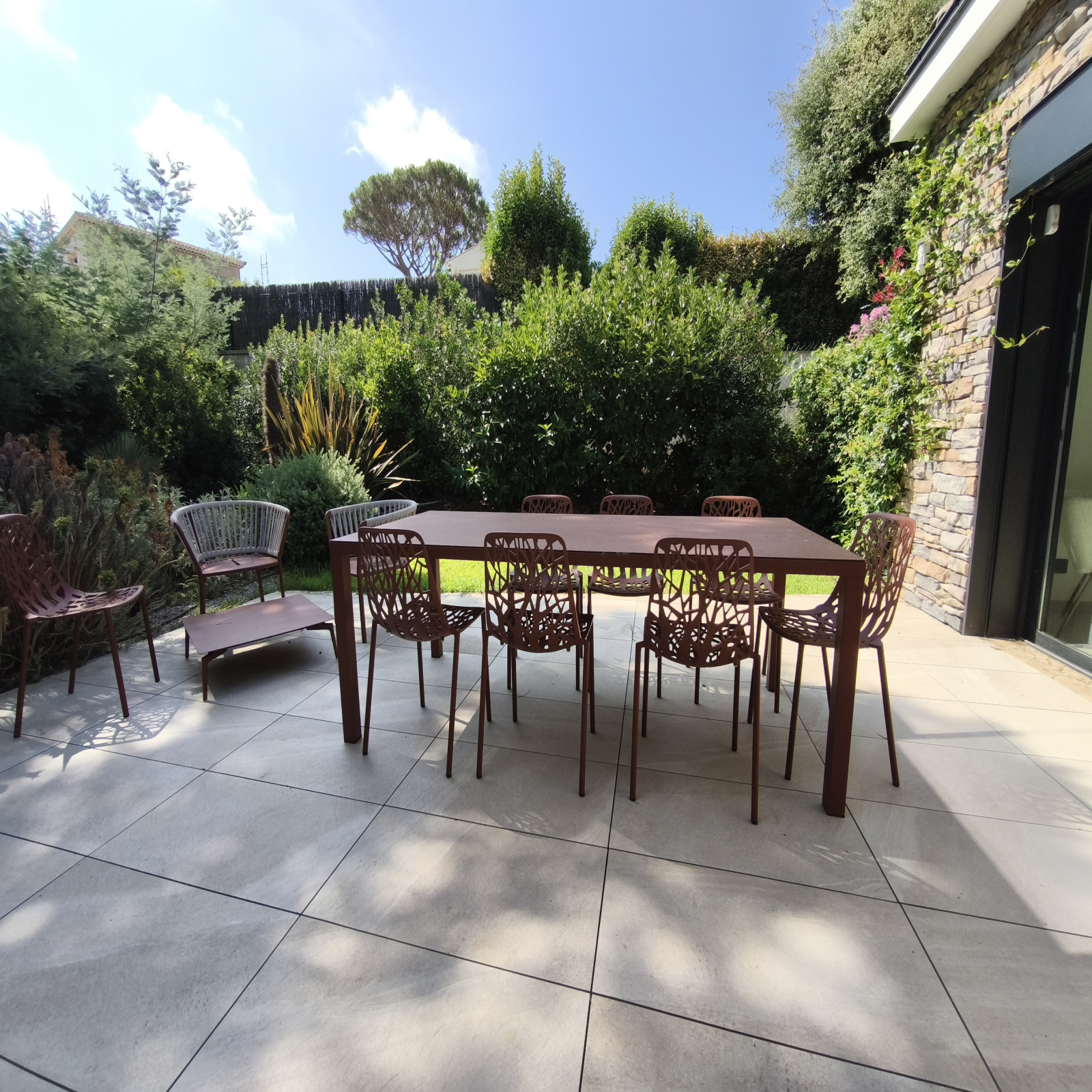 À l’arrière de la villa, une seconde terrasse et un jardin arboré apportent fraîcheur et intimité. L’ensemble paysager invite à la détente, dans un environnement aussi élégant que naturel.